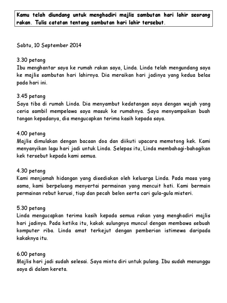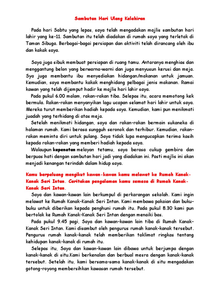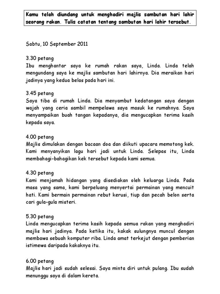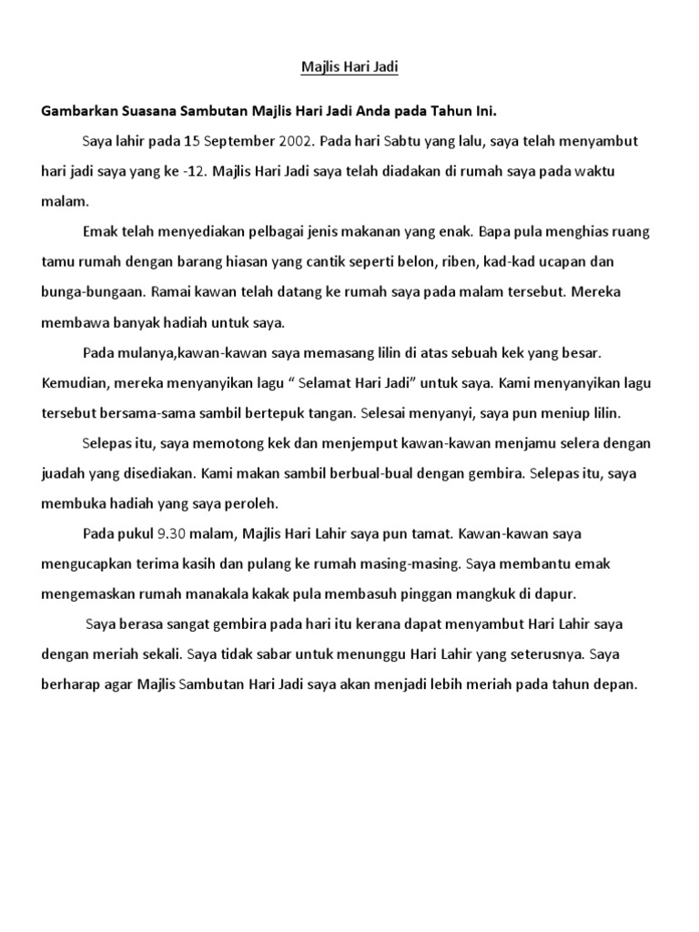 Contoh Karangan Bahasa Melayu Tahun 5 Hari Lahir